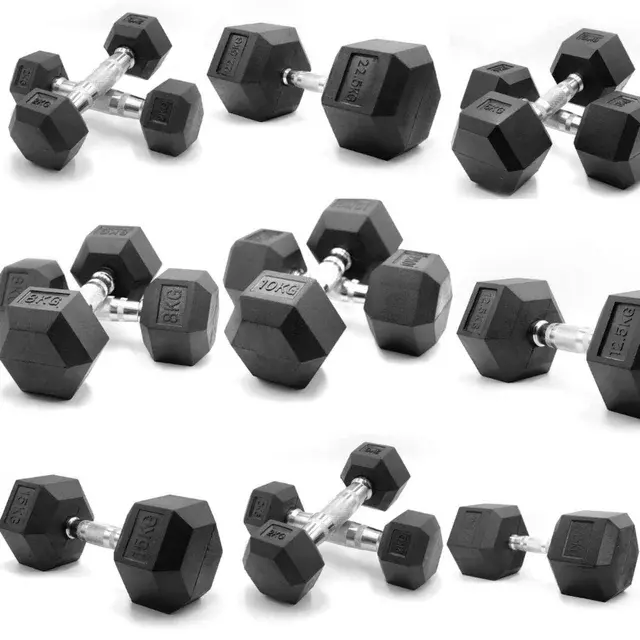 HxG Mancuernas Hexagonales de 2 a 30 kg · Cromadas y Revestidas en Caucho · Pack o Unidad · Ideales para Casa o Gimnasio · Ergonómicas y Polivalentes · Diferentes tamaños disponibles