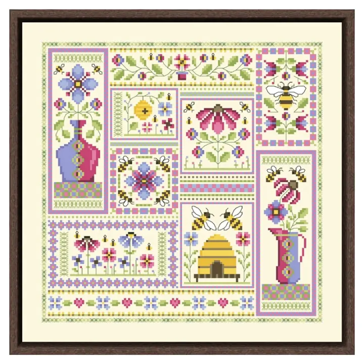 Kit de bordado de flores y abejas con diseño de carton, lienzo amarillo claro, punto de cruz, costura artesanal, 18CT, 14ct, 11CT