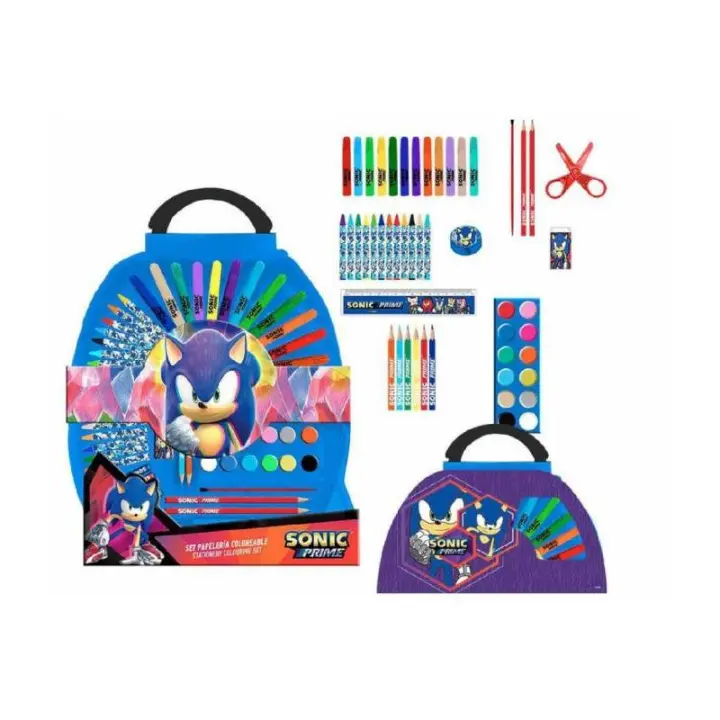 Artesania Cerda SET PAPELERÍA COLOREABLE 50 PIEZAS SONIC de Cerdá - Materiales de Calidad - Diseñados para Durar - Colección de Accesorios de Papelería y Material Escolar - Decoradas con Personajes Míticos