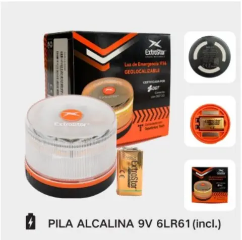 Baliza V16 Homologada DGT 3.0 con Geolocalización Integrada Extrastar - Luz de Emergencia para Coche con Conectividad NB-IoT, Visible 360° y Datos Incluidos Hasta 2038