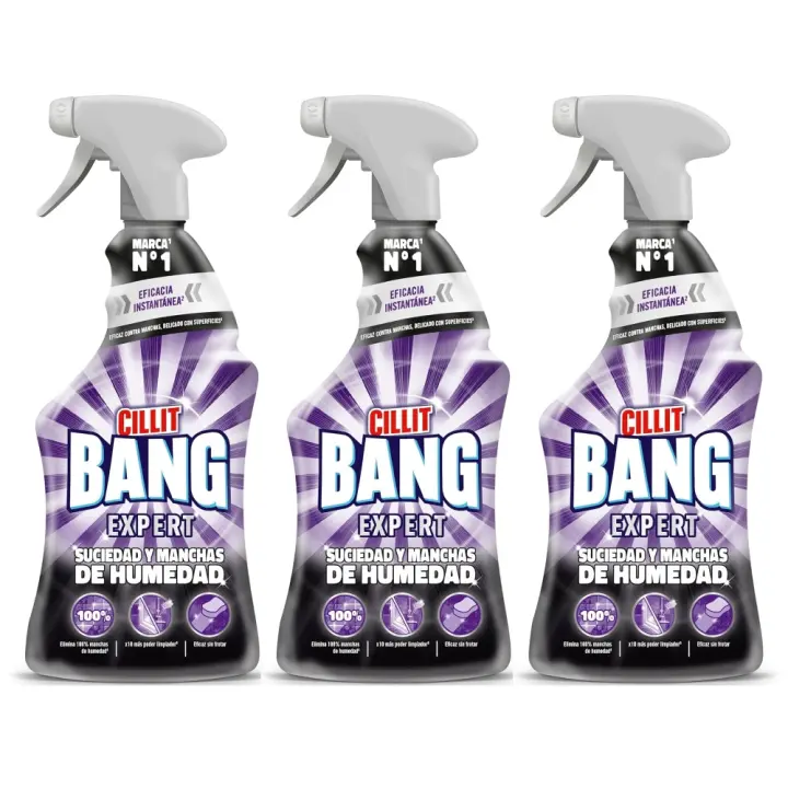 Cillit Bang Expert Manchas de Humedad y Suciedad Pistola pulverizadora 750ml (Pack 3 unidades) - Potente limpiador en spray, delicado con las superficies, Óptimo para juntas negras de paredes y baldosas, encimeras, baños, cubos de basura, desagües