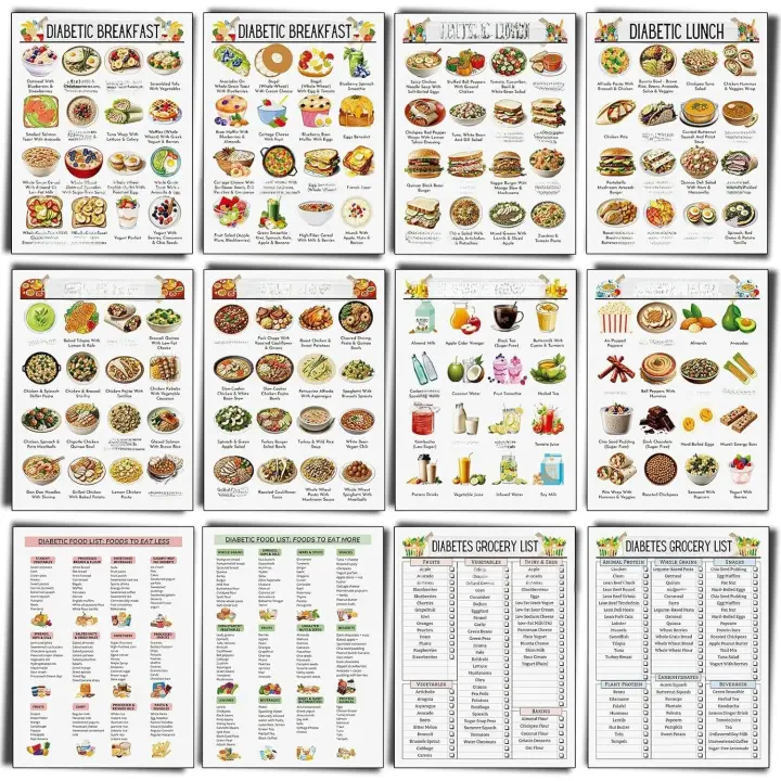Listado De Alimentos Para Diabéticos 12 Pcs Plan De Comidas Diarias Desayuno Almuerzo Cena Y Comidas Laminado 8.5” X 11”