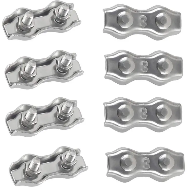 Abrazadera dúplex M3 para cable de acero - Abrazadera resistente de acero inoxidable 304 - Abrazadera para cable de 3 mm - Para cable de acero - Tendedero - Gazebo fijo - Toldo colgante (M3 - Paquete de 8 - Plateado)