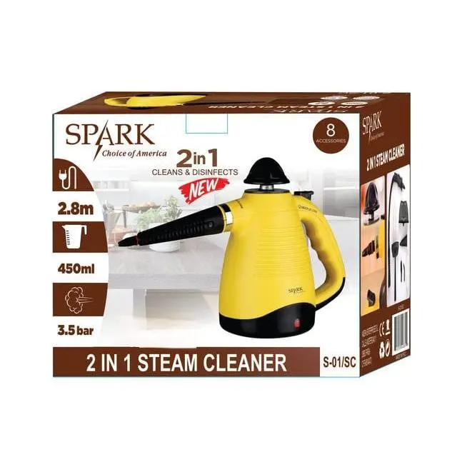 Spark - Limpiador A Vapor 2En1 - Limipia Y Desinfecta - 3.5 Bar De Presión, Capacidad 450 Ml Cable 2.8M Potencia 1000W Accesorios Múltiples, Vaporeta Hogar Coche Oficinas Cocinas Baños Baldosas Steam Cleaner Talla 2