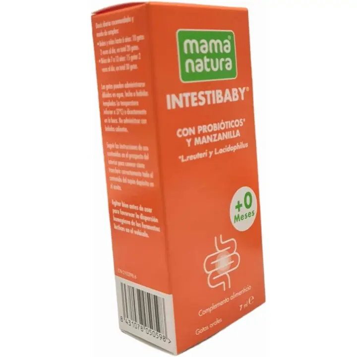 Mama Natura Intestibaby Probiótico Multicepa con Manzanilla y Aceite de Oliva Virgen extra [apoya la microbiota en trastornos gastrointestinales ] 7 ml,[+0 Meses] [L.reuteri] [L.acidophilus] [Cólico infantil]