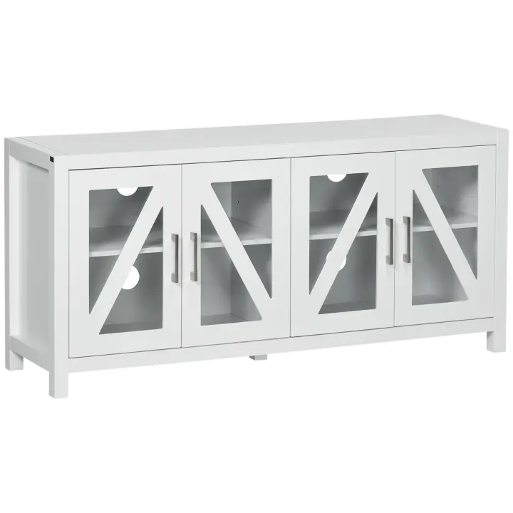 HOMCOM Mueble TV de Salón Mesa para Televisores de hasta 58" con 4 Puertas de Vidrio Templado Estantes Ajustables y 4 Orificios para Cables para Dormitorio 130x35x60 cm Blanco