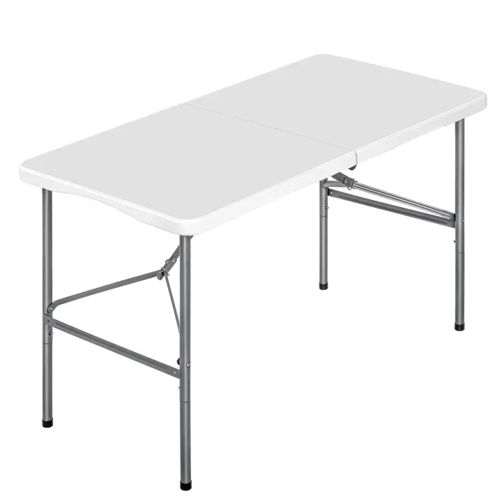 T-LoVendo Mesa plegable camping portátil, jardín, catering. Auxiliar y Rectangular 122x61cm. Hasta 120kg de carga. Para exterior e interior. Ideal para 4 personas. Eventos, oficina, estudio, reuniones. Blanca