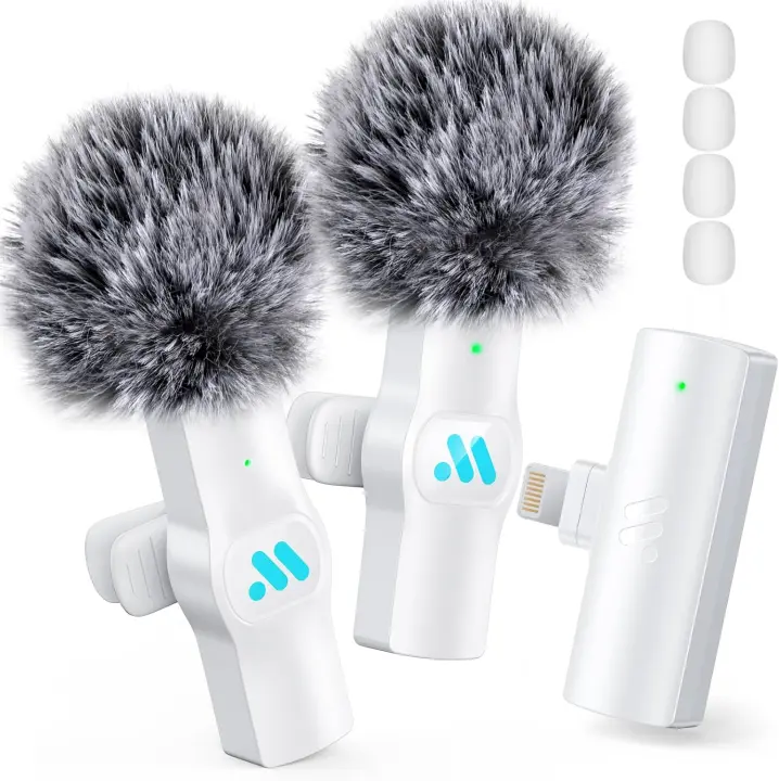 Micrófono Lavalier Inalámbrico, Mini Micrófono de Solapa Plug & Play con Cancelación de Ruido, Micrófonos Dobles para Grabación de Vídeo, Streaming, TikTok, YouTube, Vlogs, Entrevistas y Directos (iOS 12+)