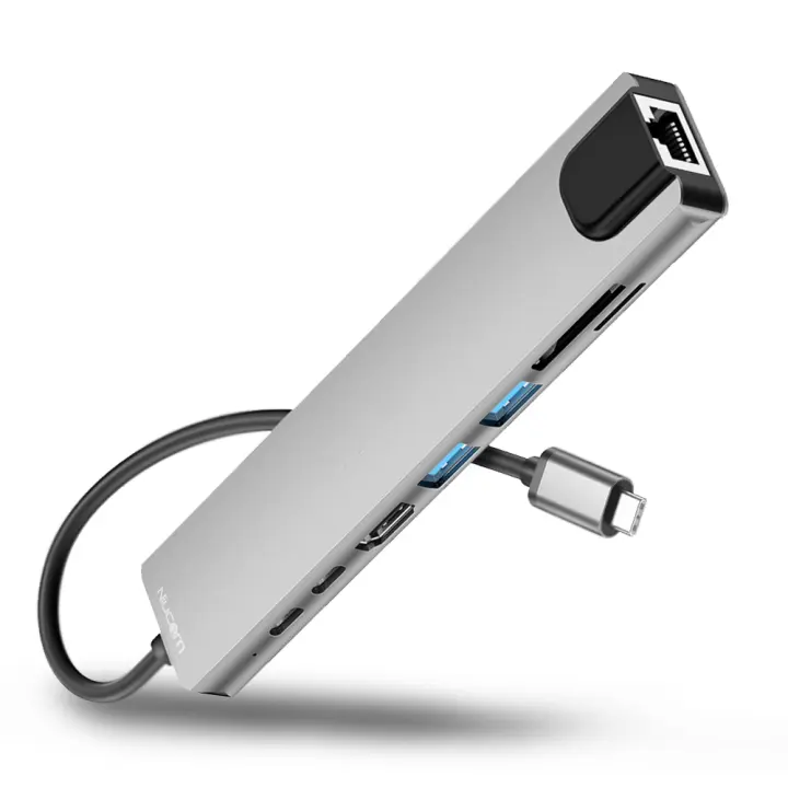 Hub USB C 8 En 1 Adaptador Extensor HDMI Compatible Con RJ45 Lector De Tarjetas SD Cargador Rápido PD Para Macbook Conversor De Laptop