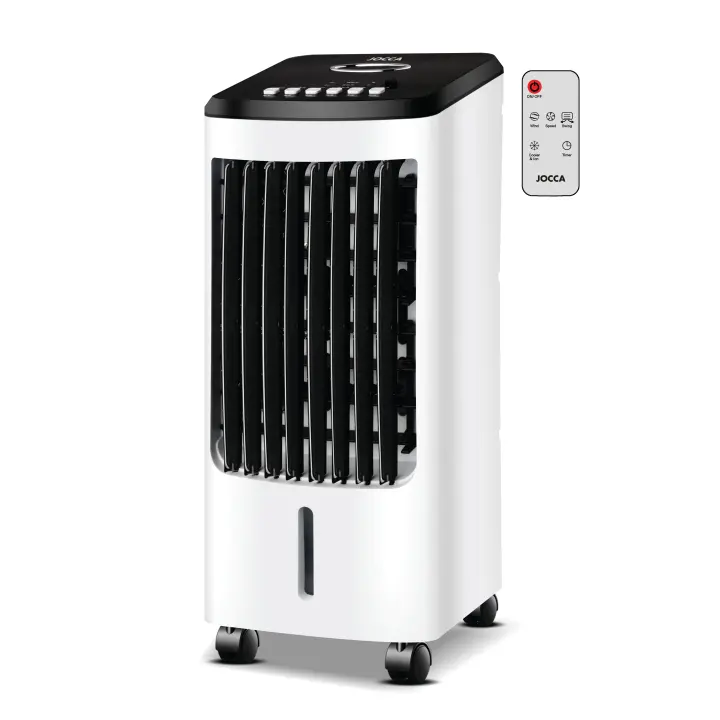 Ventilador enfriador portátil JOCCA 3 en 1 con mando, ionizador, temporizador 7h, 3 velocidades, oscilación 120°, depósito 3L, silencioso y eficiente 80W, ideal para hogar u oficina