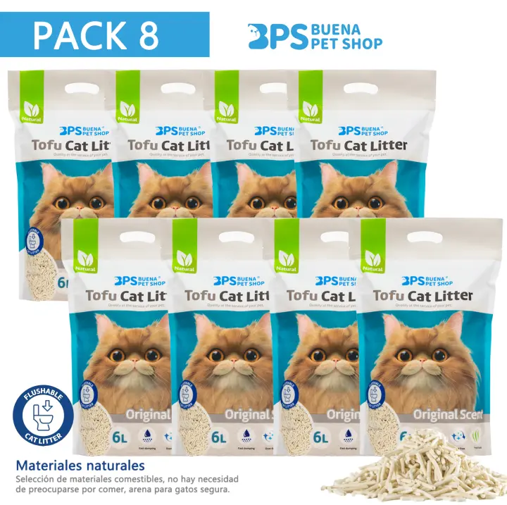 Bps Arena de Tofu para Gatos pack 8 Bolsas - Sin Olor, Fácil de Limpiar, Desechable en Inodoro, Ideal para Gatos Sensibles