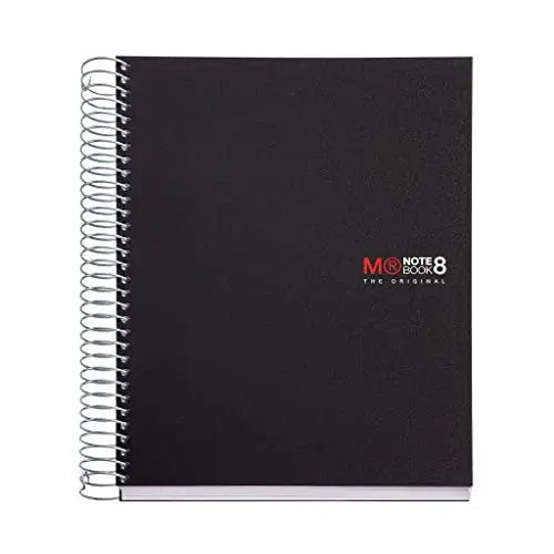 Miquelrius - Cuaderno Notebook The Original, 8 franjas de colores, Cubierta polipropileno opaco,Tamaño A5 (148 x 210 mm), 2 Taladros, 200 Hojas de 70 g/m², Cuadricula de 5 mm, Color Negro