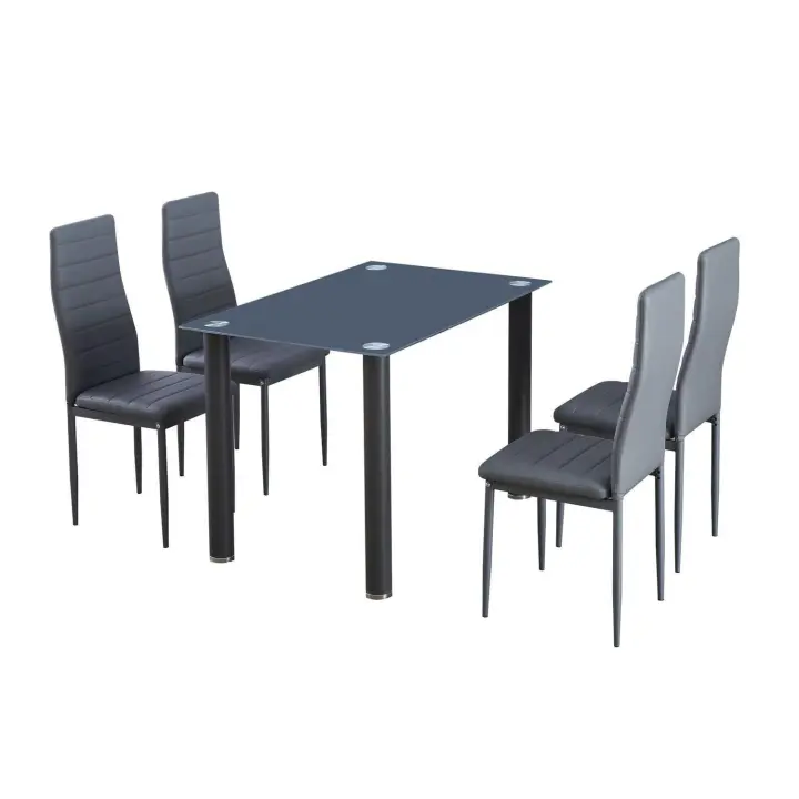HOMCOM 5uds. Grupo de comedor, mesa de comedor con 4 sillas, mesa de cocina con tapa de cristal templado, grupo de comedor, muebles de comedor, juego de mesa para cocina, comedor, acero
