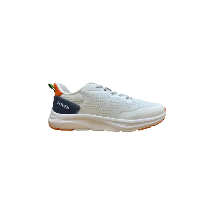 Levi's Ocean Lightweight Sneakers for Boys in White with Navy and Orange Details, featuring breathable textile upper and secure lace closure, perfect for casual wear and active movement.