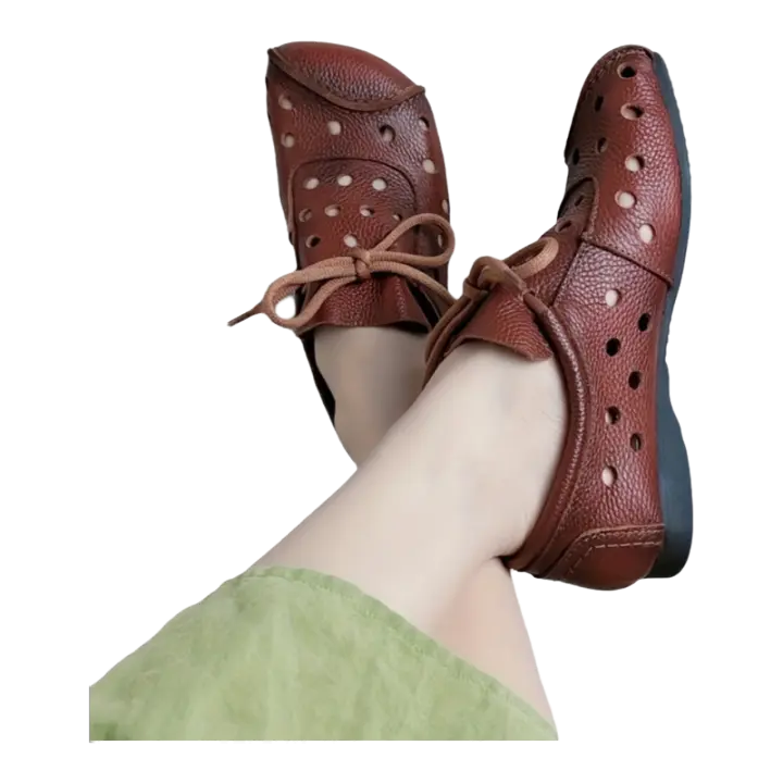 Zapatos Planos de Cuero Genuino para Mujer Marrón Suela de Goma Antideslizante Forro de Cuero