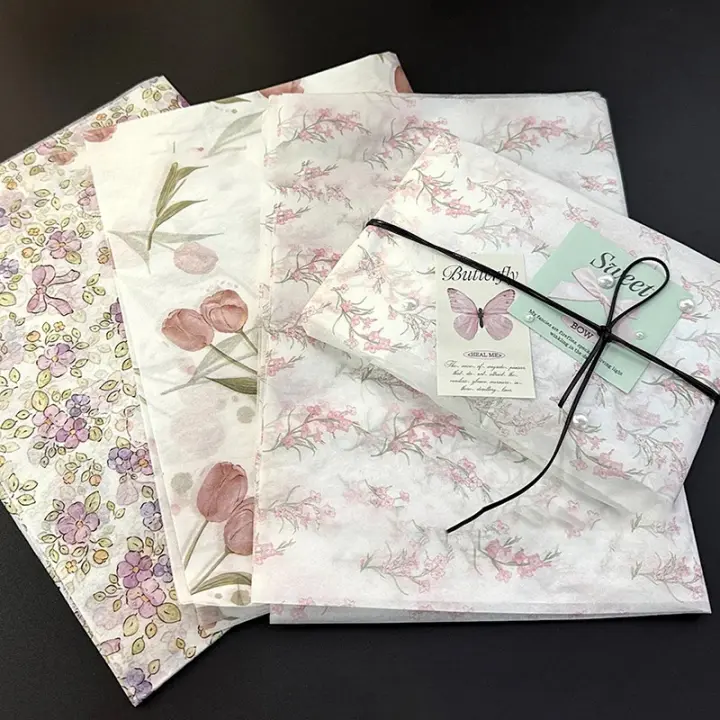 Papel De Seda Elegante Con Patrón De Tulipanes Y Hojas Verdes Para Empaquetado De Regalos Diseño Floral Artístico