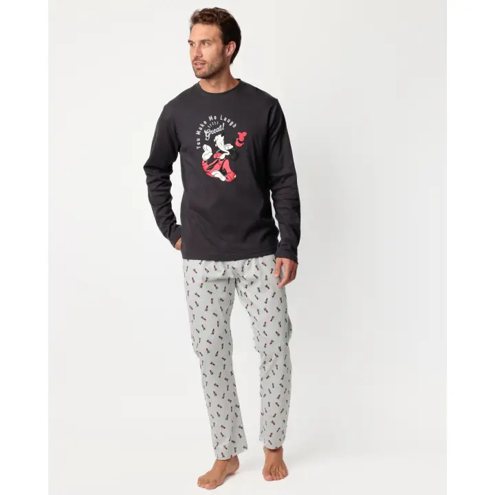 🛌 Pijama para Hombre Disney by ADMAS | Modelo Goofy “You Make Me Laugh” | Conjunto de Dos Piezas en Algodón Suave | Camiseta Negra de Manga Larga y Pantalón Gris Estampado | Tallas M-L-XL |🚚✨ modelo 63223