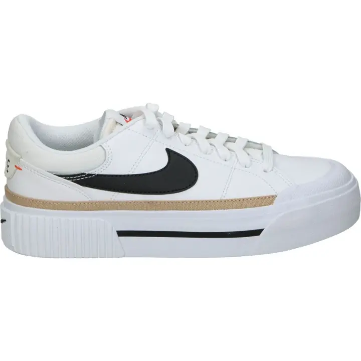 NIKE | Deportiva Nike Court Legacy Lift para Mujer – Zapatilla con Plataforma en Color Blanco con Detalles en Negro y Camel – Sneakers con Plataforma y Cierre de Cordones – Estilo Casual – Versátiles – Modelo DM7590-100