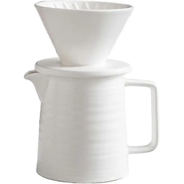 Pour Over Coffee Maker Set, Premium Ceramic V60 Dripper and Carafe, 1-2 Cup Home Filter Coffee Maker (White)
