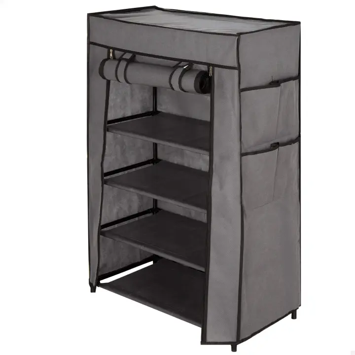 Max Home - Armario zapatero tela, 60x30x90 cm, 4 estantes, 4 bolsillos, cubierta enrollable, funda extraíble gris, peso soportado 10 kg, muebles de camping, versátil y funcional, armarios temporales, corta estancia