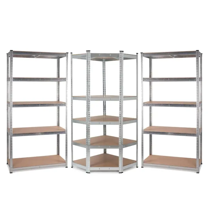 ORION91oficial® - Set 3X Estanterías Almacenaje, Galvanizada, Cargas Pesadas 2625 kg, 15 Baldas, MDF Estantería Esquinera, Modulares Acero, Alta Resistencia, Garaje - Taller - Almacén - spaziOrion91