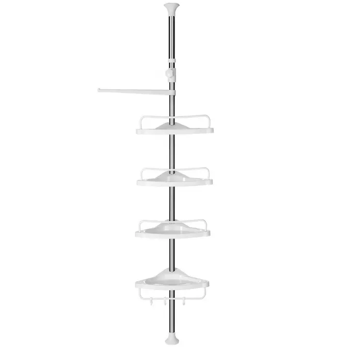 XOKOTAKI Estantería Telescópica de Baño. Estante Esquina de Ducha de Plástico y Metal sin Taladro. Organizador de Bañera, Cocina, Lavabo de Altura Ajustable 180 a 325 cm con 4 Baldas, Toallero y 3 Ganchos