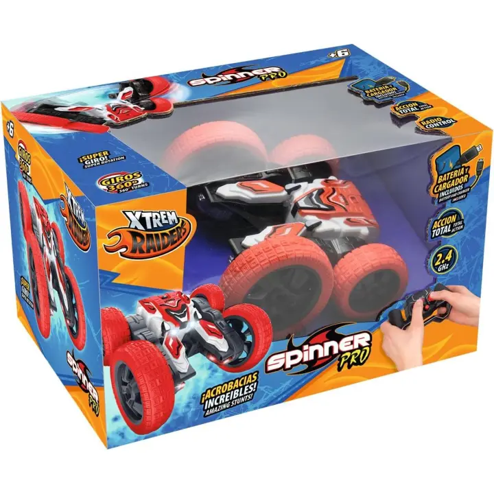 Xtrem Raiders – Spinner Pro | Coche Teledirigido Acrobático RC 2,4 GHz | Giros 360°, Luces Led, Velocidad 13 Km/h | Coche Teledirigido Niños 6 Años | Coches Radiocontrol para Interior Y Exterior (World Brands XT189031)