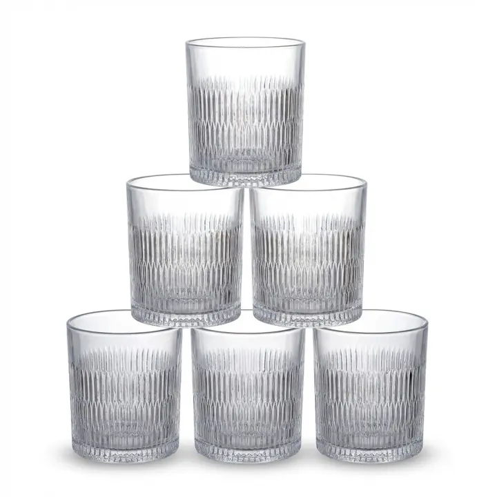 SANTA CLARA | Set 6 Vasos de Cristal 35cl Tallado para Agua y Vaso para Whiskey, Modelos Aberdeen, Highland, Oban y Skye, Vasos Bajos de Vidrio Transparente, Aptos Lavavajillas y Microondas