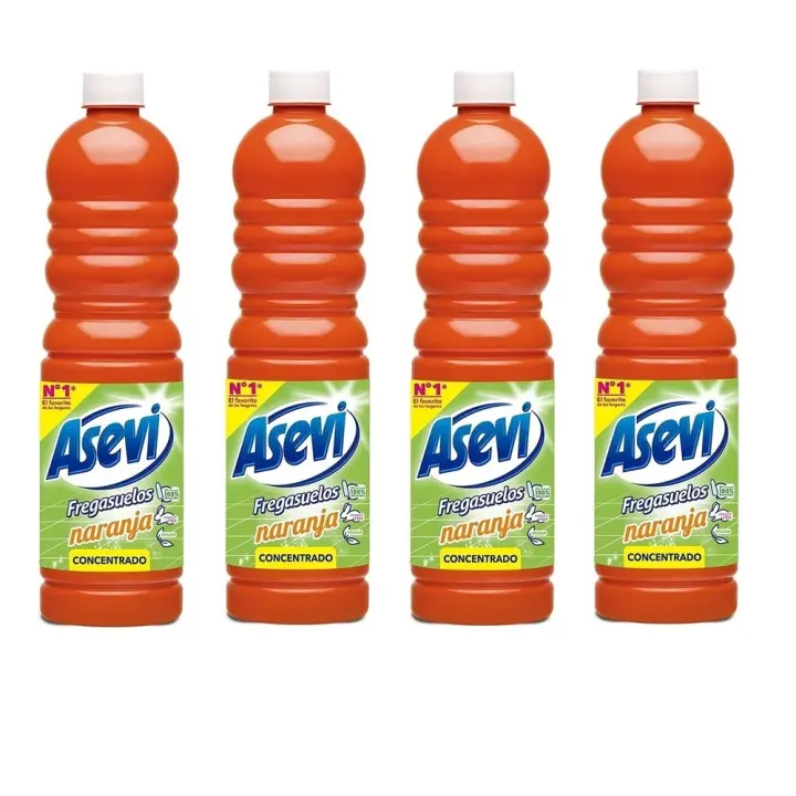ASEVI- Pack Ahorro Fregasuelos Naranja 4 X 1000 Ml Concentrado Perfume Intenso y Duradero