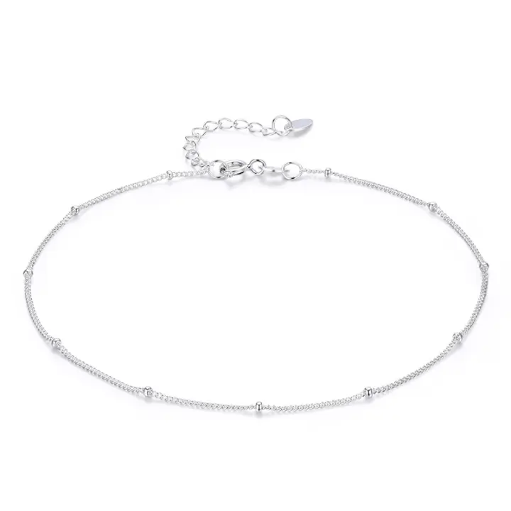 Pulsera de Cadena de Perlas Delgada de Plata Esterlina 925 Joyería Permanente para Mujeres