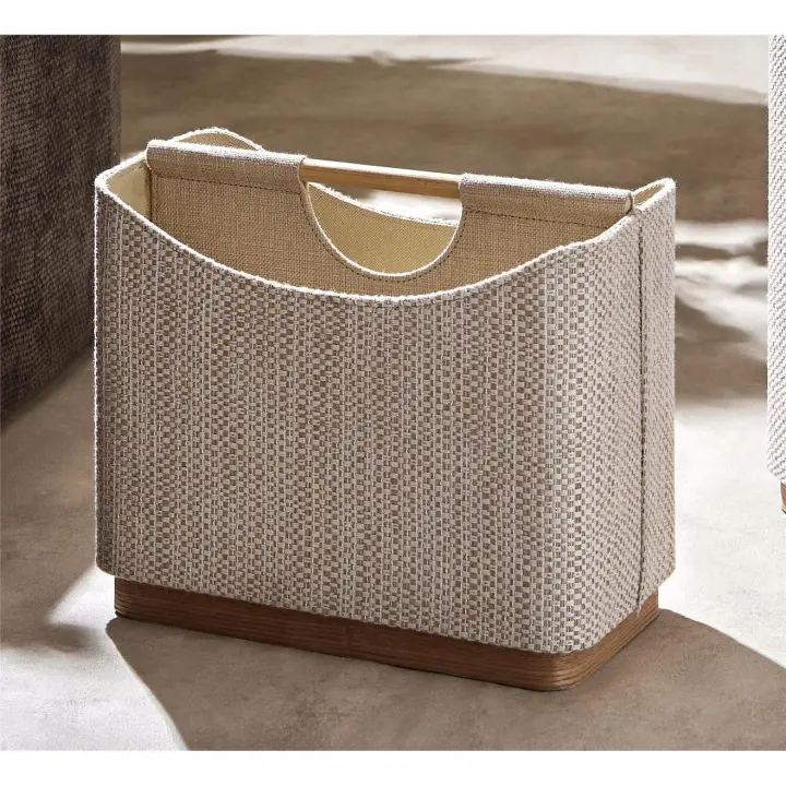 Revistero decorativo en tela beige y madera modelo Rui VS Venta-Stock 50x35x83cm