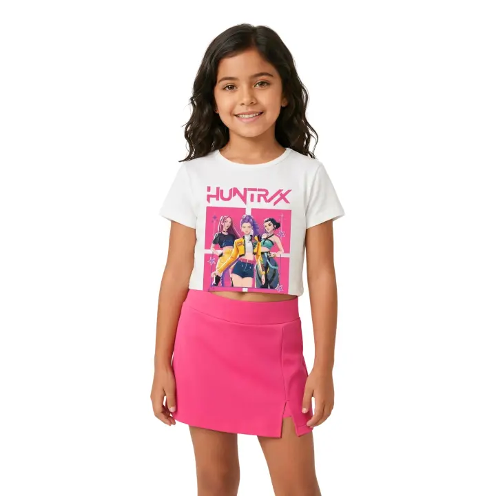 MAGIC SELECT Conjunto K-Pop Niña Camiseta Crop Manga Corta y Falda Pantalón. Moda Anime Infantil. Conjunto Idol Coreano. Conjunto de Verano para Niñas de 4 a 14 Años