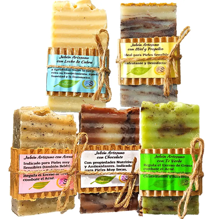 Antiedad. 5 Jabones Artesanos Naturales. PumarShop Cinnia Natura. Pack Ahorro con Jabones de Chocolate, Té Verde, Leche de Cabra, Miel y Propóleo, Avena. Hechos a mano. Vegano.🛑 [en caso de falta de stock de alguno, se sustituirá por otro similar]