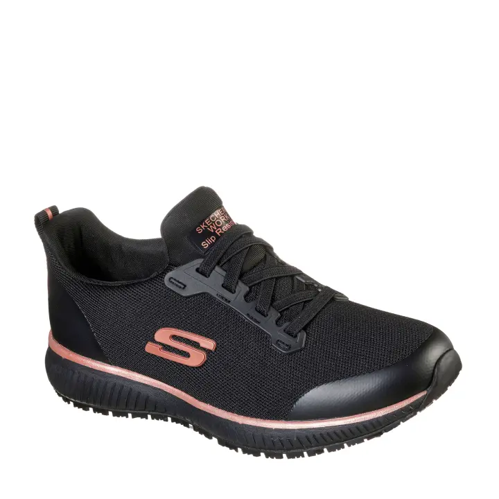 SKECHERS | Zapatilla de Trabajo Skechers Squad SR para Mujer – Zapato de Trabajo en Color Negro – Sneaker de Trabajo con Cierre de Gomas – Cómodo – Perfecto para estar de Pie – Modelo 77222EC-BKRG