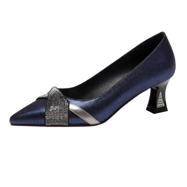 Zapatos De Tacón Alto Para Mujer En Color Azul Navy Con Cristales Estilo Clásico Y Sexy Para Fiestas Y Oficina Zapatos De Punta Redonda Y Cierre Slip-On