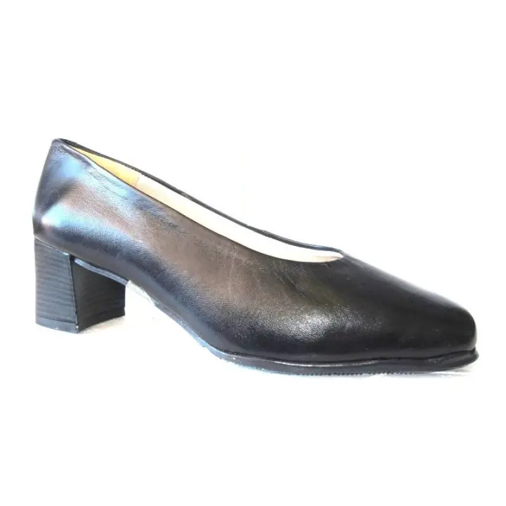 PEMBER 2009 Salón de piel negroi, ancho especial, interior en piel acolchada, suela de goma flexible, tacón de 6 cm