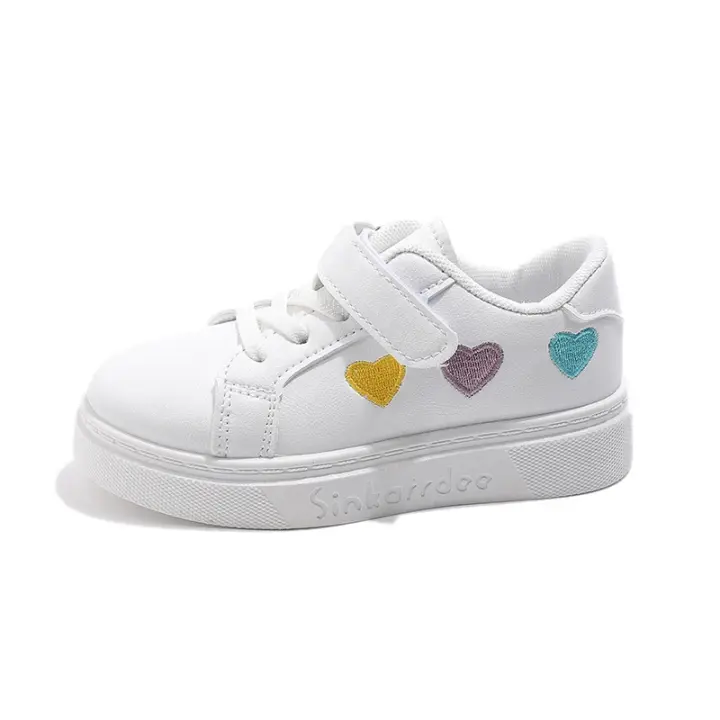 Zapatos informales para niños pequeños, niños y niñas, zapatillas de Skate blancas Unisex, nubes de dibujos animados, corazón, amor, bordado, dulce y suave