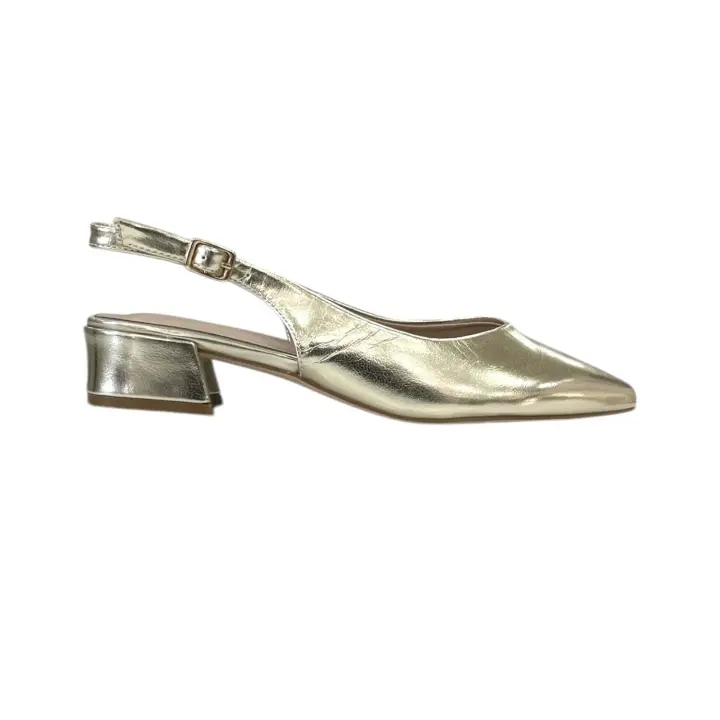Salones Slingback con Punta Afilada, Detalle Metálico Dorado y Tacón de Aguja Bajo, Calzado de Fiesta y Oficina. Wunder Spring