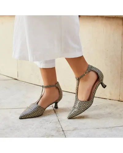 Calzados soraia, Zapatos de Tacón Medio Destalonados para Mujer, Punta Fina Texturizada Beige con Correas Marrones y Hebillas Decorativas, Estilo Elegante Francés y Retro para Oficina y Fiestas Playa Hebilla Fiesta Oficina