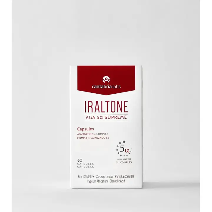 IRALTONE AGA 5a Supreme - Complemento Alimenticio para la Caída Capilar Crónica Severa, con Serenoa Repens y L-Cistina, 60 Cápsulas