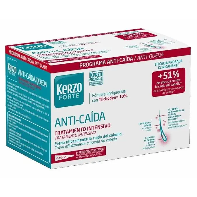 KERZO | Kerzo Forte Anti-Caída Tratamiento Intensivo con Ampollas para el Cuidado del Cabello - 14 Unidades