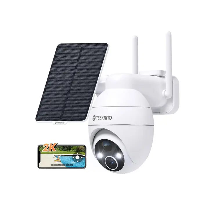 Eshow YESKANO Camara Vigilancia WiFi Exterior Solar, 2K Cámaras de Vigilancia sin Cables, 360° PTZ,Visión, Detección de IA, PIR Sirena,IP66