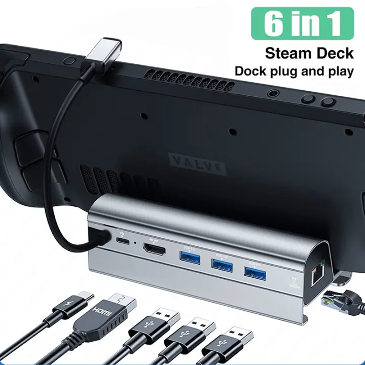Estación De Anclaje Para Steam Deck Con Soporte 6 En 1 4K60Hz HDTV 1000Mbps LAN USB 3.0×3 Hub PD 100W Para Steam Deck/ROG Ally