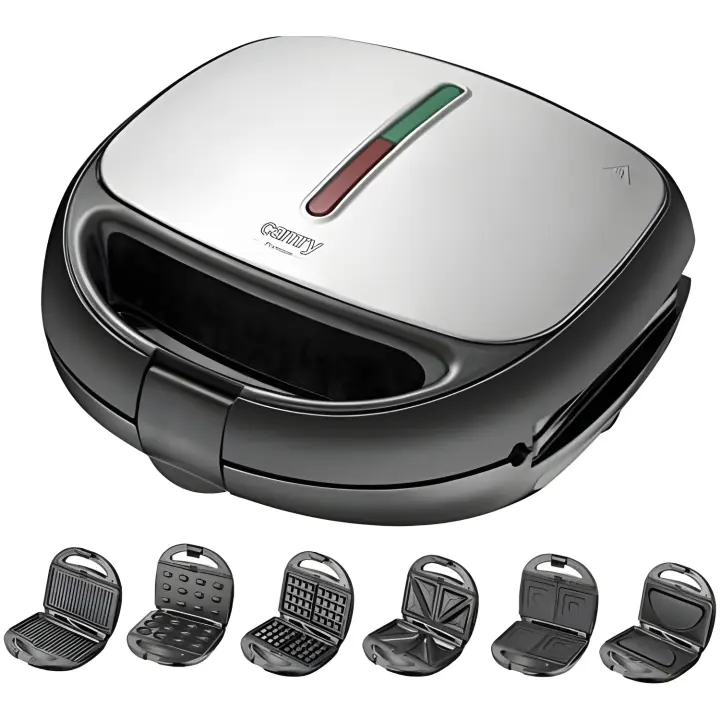 Adler Camry CR3057 Sandwichera Doble 6 en 1 | Placas Intercambiables | Sandwich Tostadora | Gofrera Gofres Belgas | Grill Plancha para Carne y Pescados | Galletas de Nuez | Temperatura Automática | 1200W