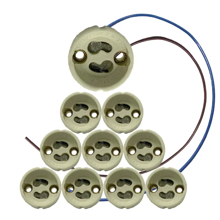 LED ATOMANT Portalámparas GU10, cable de silicona largo 20 cm 0,5 mm², 300-500V, conector base de cerámica para bombillas GU10 LED o halógenas, ideal para lámparas de techo, focos, spots, instalación segura y resistente al calor