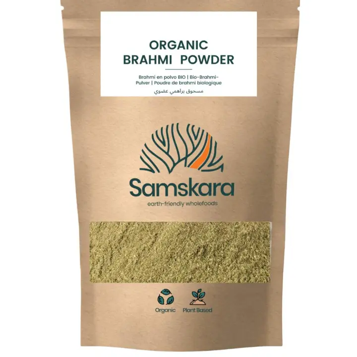 POLVO DE BRAHMI BIO Orgánico + Plasticidad cognitiva, Memoria, Concentración, Tranquilizante, Equilibrio emocional, Ayuda digestiva y para dormir -100gr x 2