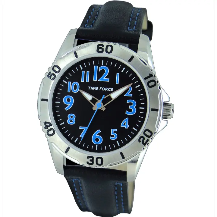 Time Force Tf4137b01 Reloj Analógico Para Chico Chica. Color Negro. Esfera Negra. Números en Azul. 50 Metros.