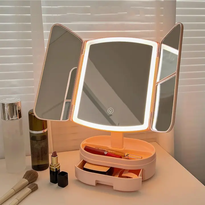 BIT Espejo para maquillarse,Espejo con Luces, Espejo de Lupa 1X 2X 3X, con control Espejo tácil, 3 Colores de Gradación,Ajuste de Brillo, Espejo portátil, espejo con el cagón. 2 colores.
