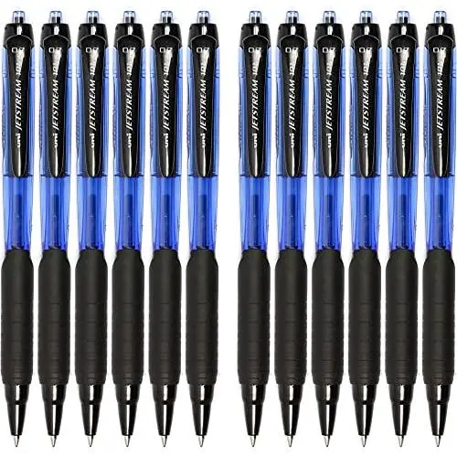 Boligrafo Jetstream Uni-ball 1.0 mm - Tinta líquida por lo que se consigue una escritura rápida y cómoda - Procedente de 81% de plástico reciclado - Disponible en color azul, negro y rojo en formatos de 5 unidades o caja de 12 bolígrafos
