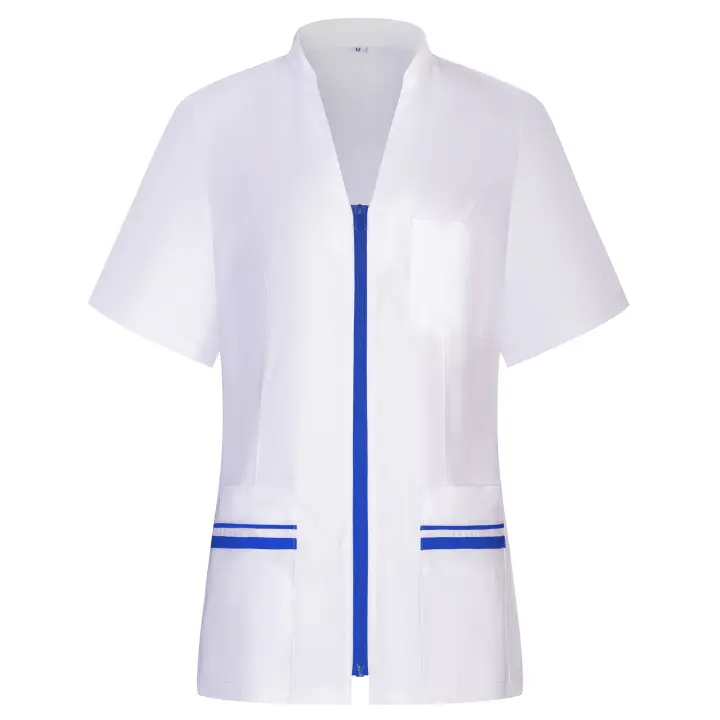 KAIXUAN VICTORY - Casaca Sanitaria Señora de Médica Enfermera Dentista Estética - Uniforme Laboral Limpieza Hostelería Manga Corta con Cremallera – Serie 829